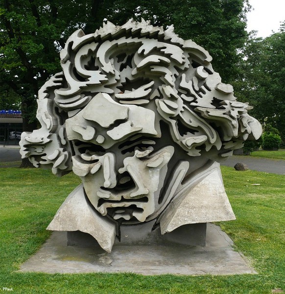 | Установлен он в Бонне в 1986 году. Автор Клаус Каммерихс. Расположен перед зданием концертного зала "Бетховен - холл". Необычен он тем, что смотреть на него нужно на расстоянии. Чем ближе приближаешься к нему, тем больше это похоже на "хаос" из бетонных кусков.  Добавлено (19.11.2011, 21:34) --------------------------------------------- Какая я невнимательная!!!!! Татьяна уже выложила эту картинку, а я просмотрела. Поэтому приношу извинения. И осталю только вторую, для того, что бы на самом деле увидеть уникальность памятника, как из простой груды бетона появляется что то удивительное....